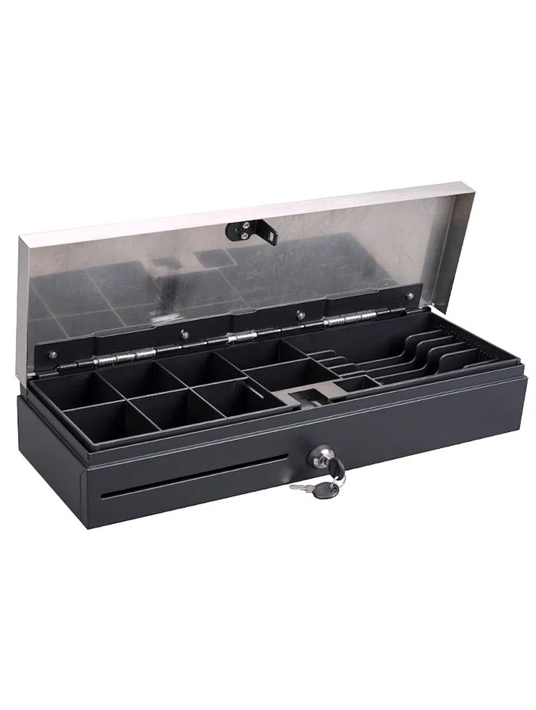 - Descrição: Gaveta Dinheiro Metálica Preta Vertical INOX 5N/8M - 460x170x100